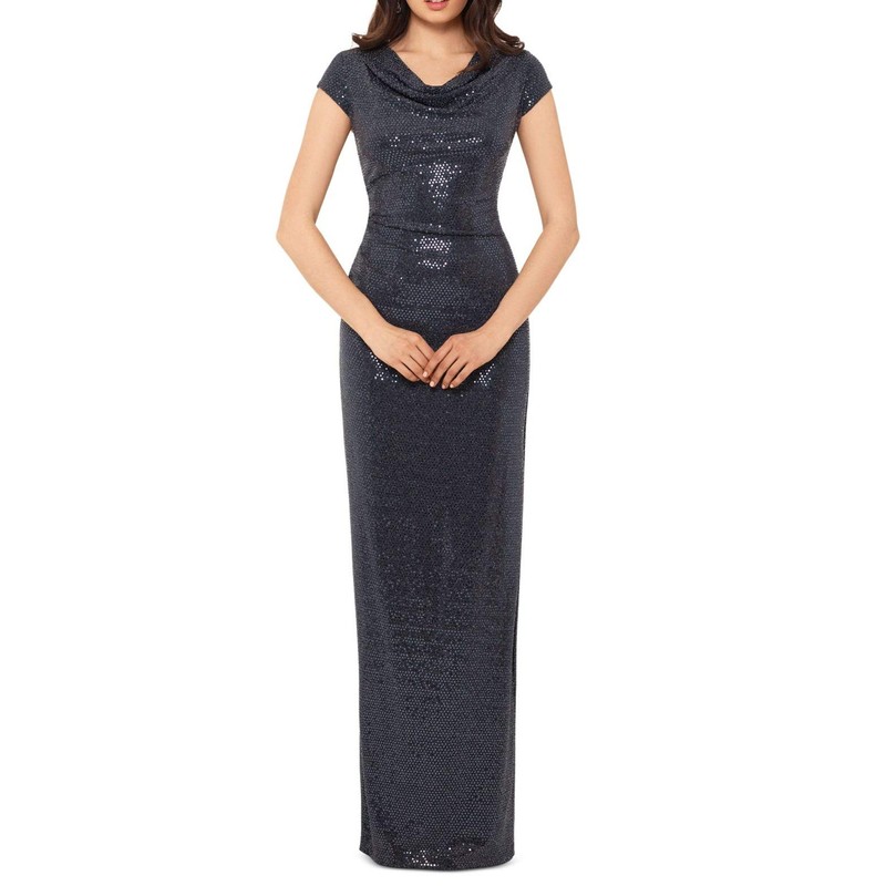 X by Xscape Womens Open Back Cowl Neck Evening Dress Gray 4