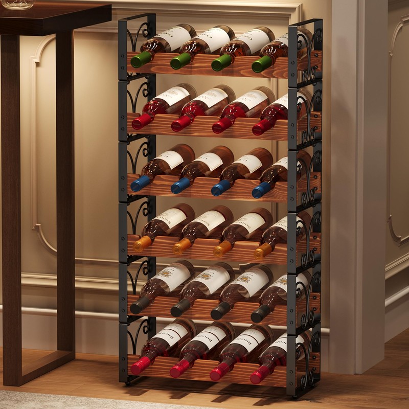 X-cosrack Freestanding Wine Rack Holds 24 Bottles, 6-Tier Floor Standing Wine Stackable Storage, Wine Display Rack with Solid Wood Modern Design for Home Bar & Dining Room