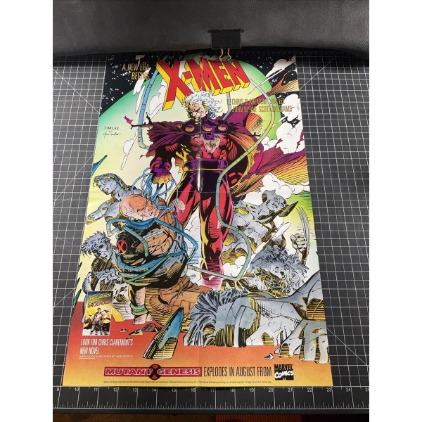 This X-Men Mutant Genesis poster features the iconic character Magneto, as depicted by renowned artist Jim Lee. Produced in 1991, this poster is a must-have for any fan of the X-Men universe. Measuring 23 x 14 inches and folded for easy storage, it would make a great addition to any collection.