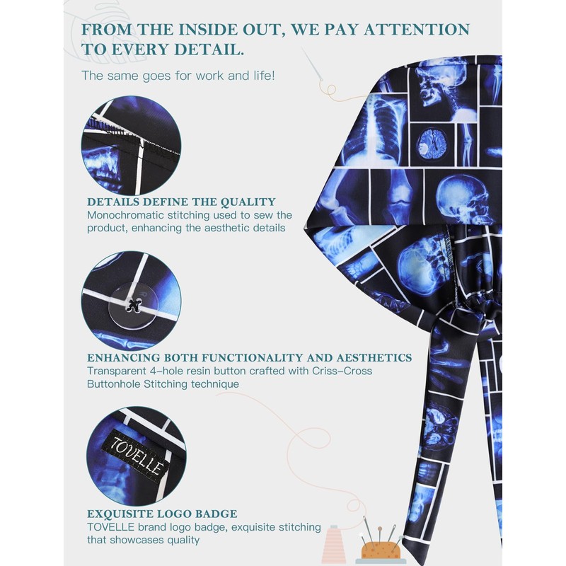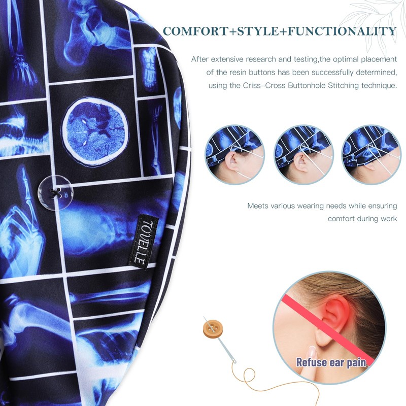 - Featuring unique X-ray printed scrub cap designs and vibrant double-sided prints, these caps balance professionalism with individuality. The extended tail design accommodates various hairstyles, ensuring a secure fit for busy nurses, doctors, and other healthcare professionals