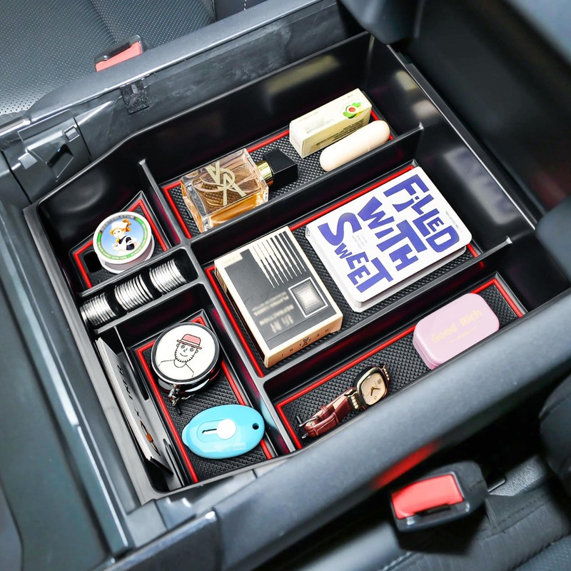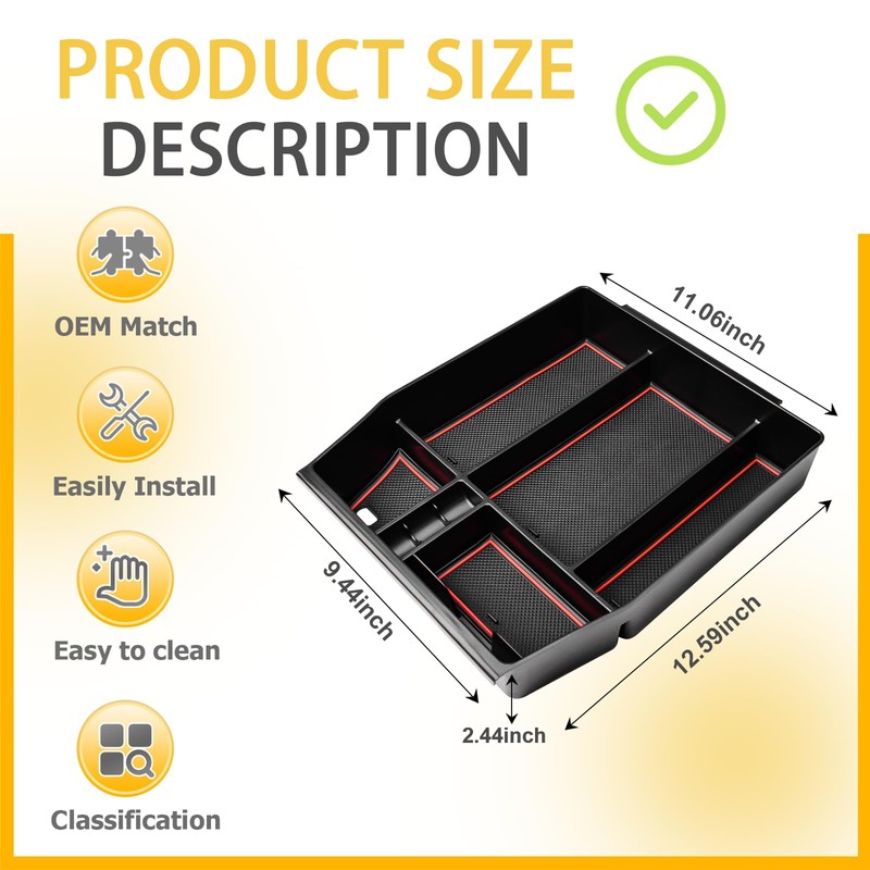 - More Organized -- Our Armrest Storage Tray fits snugly into the center console of the F-150 with no sliding or moving around in the console space. Once installed, there is plenty of room underneath the tray for you to store something less used and keep frequently used items on the tray for easy access.