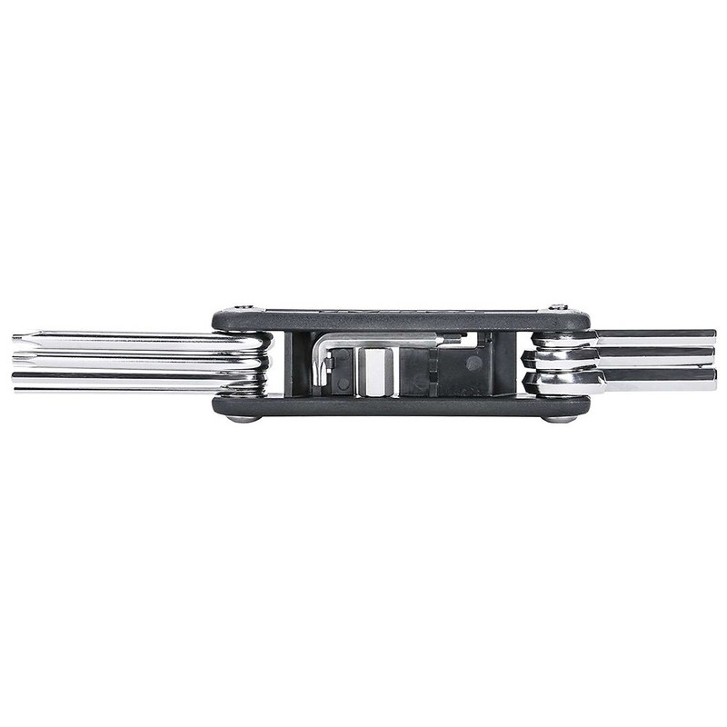 Efficiency is everything when you have to make a repair on the road. The X multi-tool by Top Peak features 10 functions, steel tool material, and weighs only 115g. You can find what you need quickly and get back to riding. A few items included in this multi-tool are Allen wrenches, a self-tightening tool, a #2 Phillips screw driver, and a Torx wrench.Features: 10 functions Allen wrenches 2, 2.5, 3, 4 (2 pieces), 5, 6, and 8mm Allen wrenches Torx wrench T25 and #2 Phillips screw driver Added self-tightening tool Tools made of Chrome vanadium steel Weighs 115g