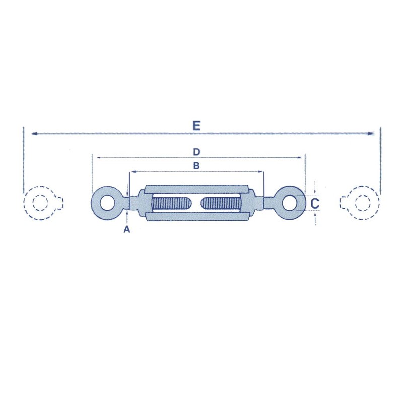 These galvanised eye and eye straining screws can be used for tightening, tensioning and adjusting many wire rope applications. As they are open bodied, the thread is visible, allowing for the user to monitor the rate of turning. Also known as turnbuckles, they can also be used with chain and cable, whilst also being hugely popular in the caravanning industry.