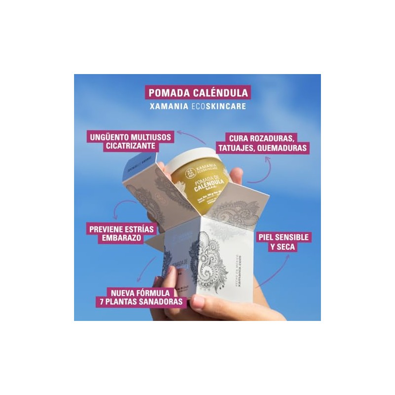 Título: XAMANIA Pomada de Caléndula Orgánica. Ungüento Vegano Multiusos Sanador para el Tratamiento de Piel Seca, Sensible, Eczema, Rosacea. 106 gr.