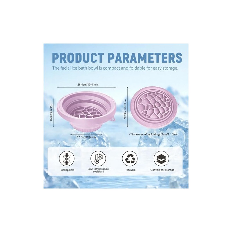 - Collapsible & Travel-Ready: The face ice bath bowl is compact and foldable for easy storage. Perfect for home or travel, it saves freezer space and offers a convenient cold facial treatment anywhere