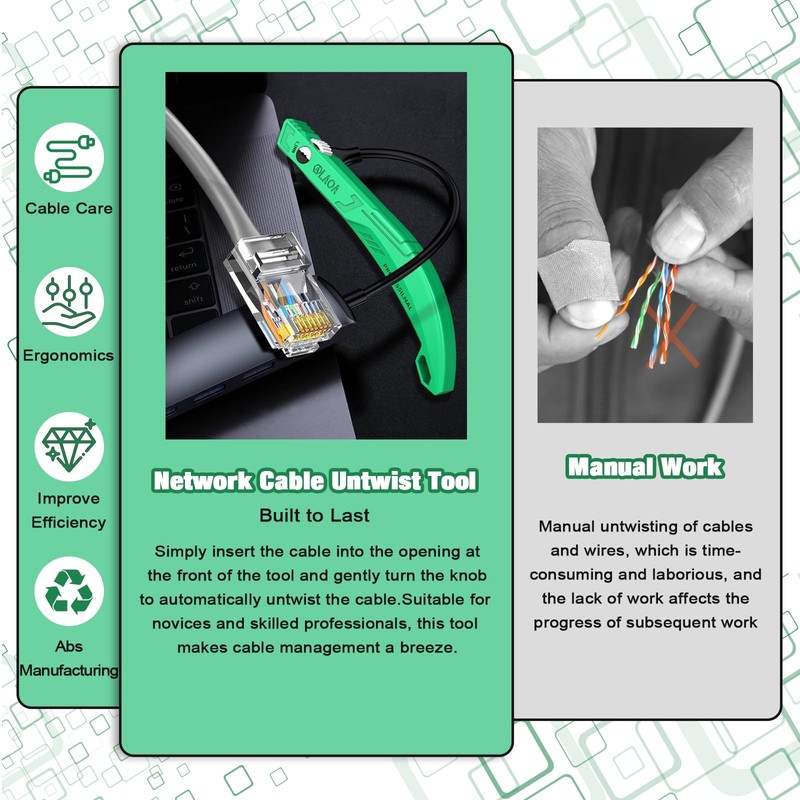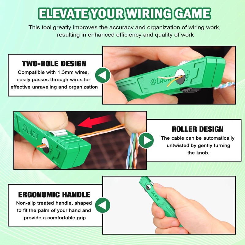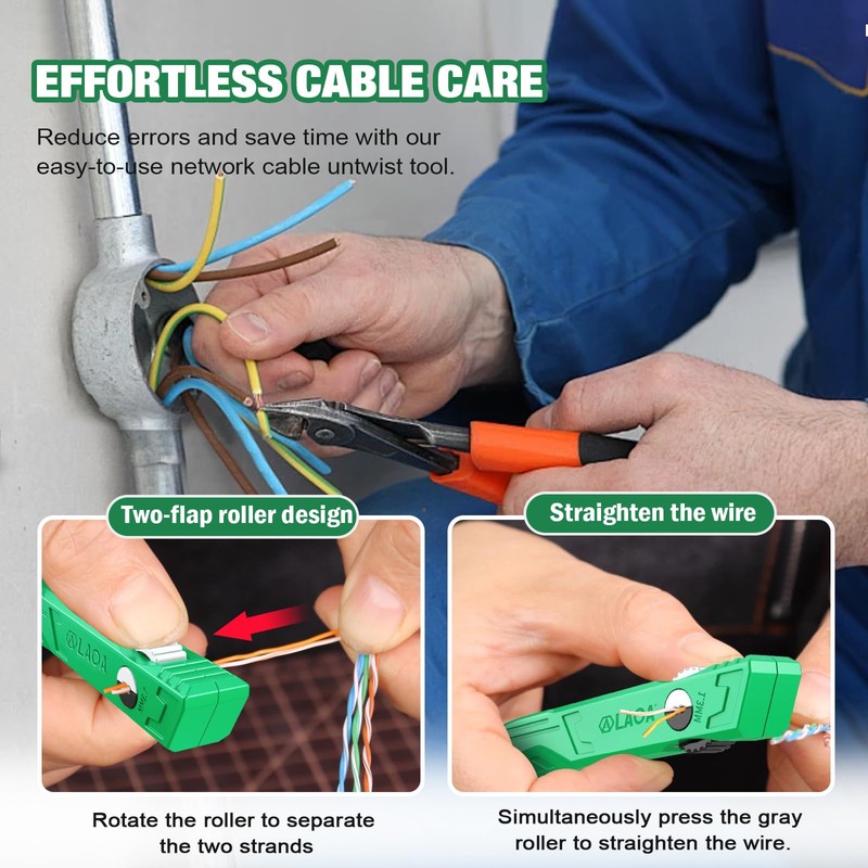 • Twist & Press for Smooth Operation:Just twist to untangle, press to align—this wire and cable straightener simplifies pair separation for new installs or repairs, saving time for beginners and professionals alike