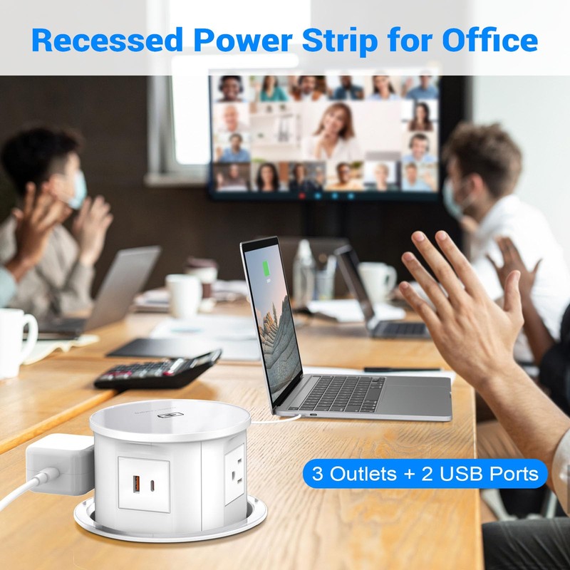 - 【Widely used pop up power strip】Made of Refined Hardened Scratch-Resistant PVC Plastic and Aluminium, it is durable and can be used for office desks, conference tables, kitchen countertops, etc.