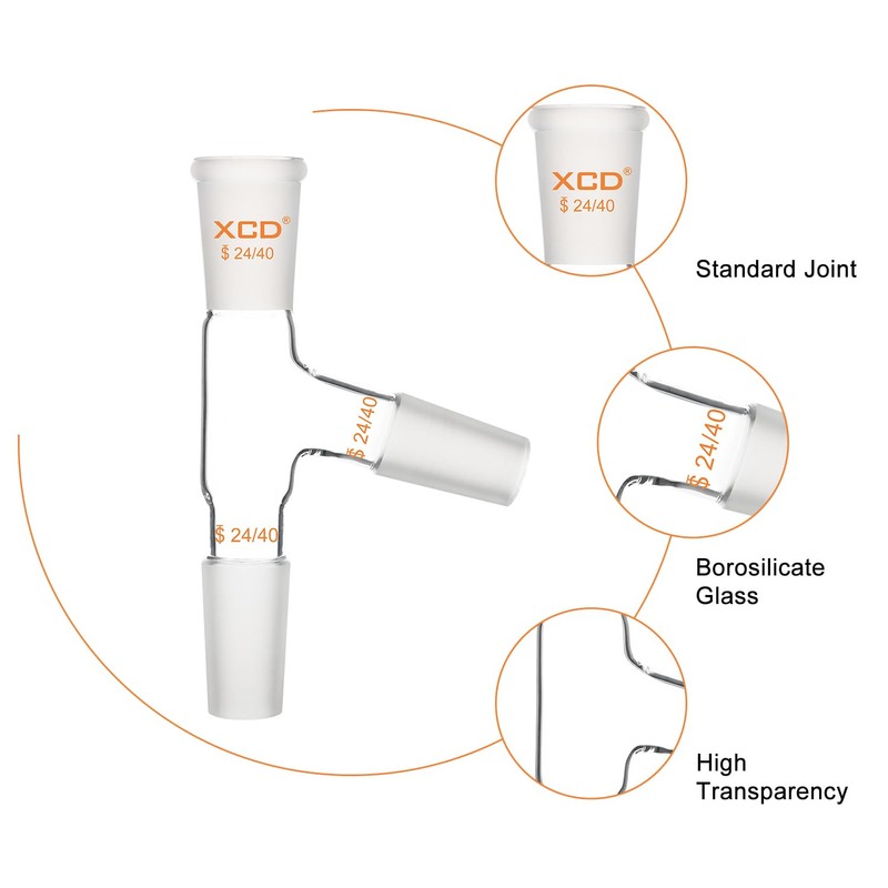 • Adapter Type: 3-way distillation adapter with a 24/40 joint size, providing compatibility with a range of laboratory glassware