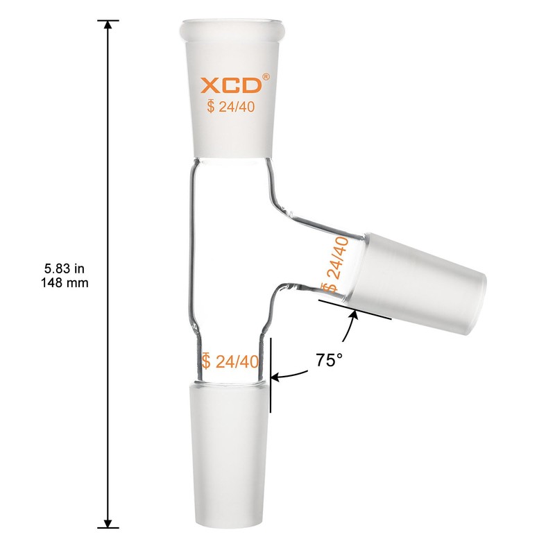 • Distillation Applications: primarily employed for distillation processes, this XCD distilling adapter facilitates the connection of a condenser to the 75-degree outer joint, while a thermometer can be attached to the upper portion