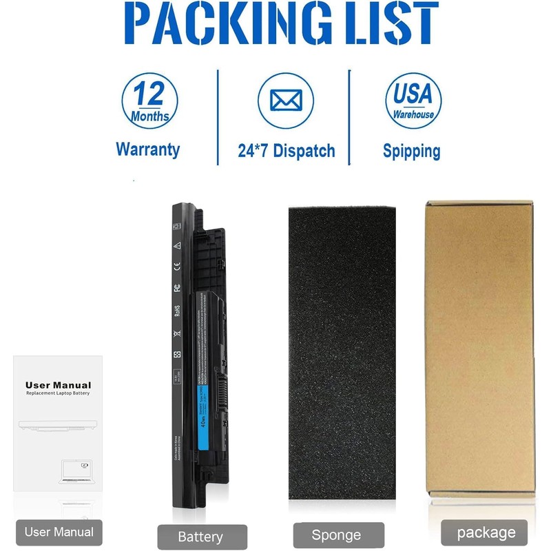 - 【Fast Charge】Dell 40wh standard 14.8V Rechargeable battery.Grade A 4-cell ensure fast charged and low power consumption. Note: Please find your specific laptop model before ordering a correct battery.