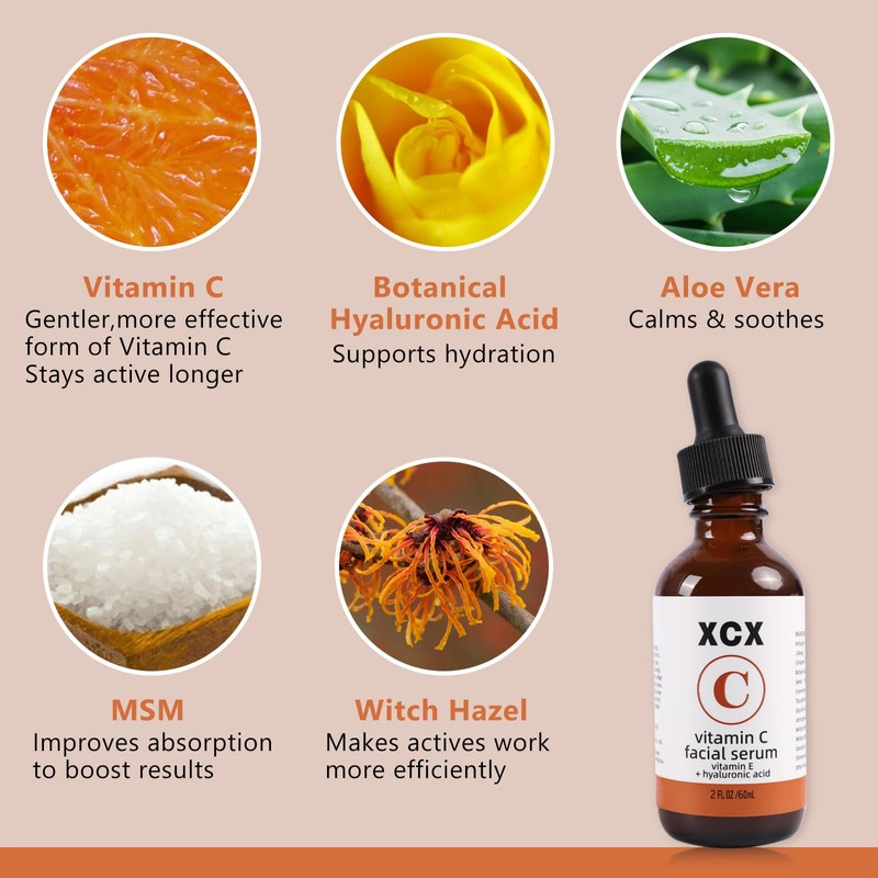 XCX Vitamin C Serum For Face with Vitamin E Hyaluronic Acid - Boost Skin Collagen,Hydrate & Plump Skin, Anti Aging & Wrinkle Facial Serum 60ml
