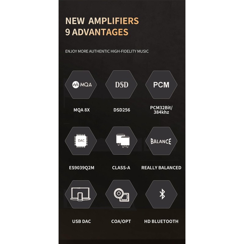 • 【KEEP ON PERFECTING PROFESSIONAL POWER CHIPS】REFINED MATERIAL SELECTION, KEEP ON PERFECTING. Imported chips, professional power chips. High-end capacitor design to ensure high-fidelity sound quality. Using newest DAC chip ES9039Q2M as the decoding chip, the sound quality is even better.
