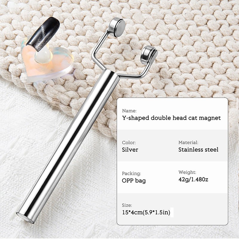 XEAOHESY 1 Piece Y-shaped Silver Cat Eye Magnet for Nails Multi-Functional Nail Magnet Tool Double Ended strong Magnet Stick for Cat Eye Gel Nail Polish