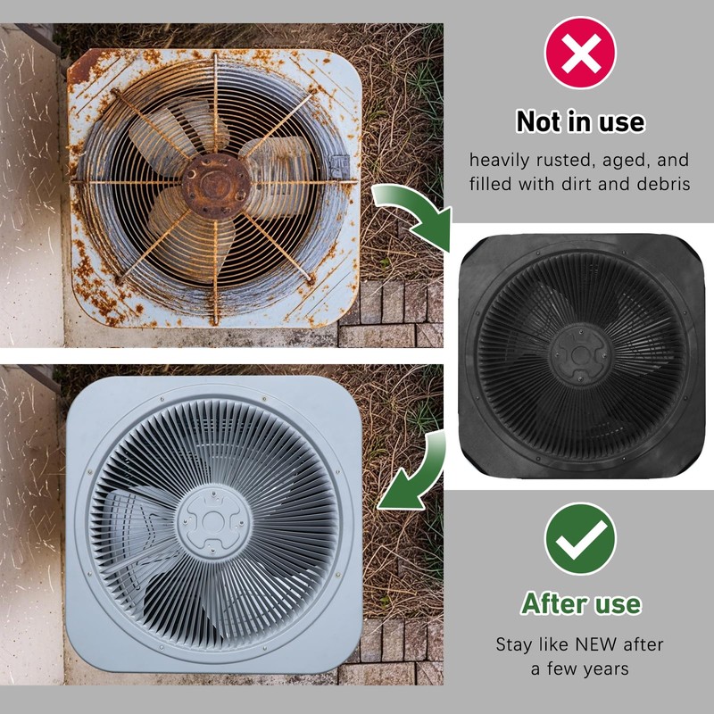 - Wind Resistant And Leaf Guard: Protected by rust-resistant elastic hooks, the ac unit covers will not move even in the face of strong winds. The ac cover is also good at blocking fallen leaves, branches, debris, grass and other things from being blown into the air conditioner, thereby extending the life of the air conditioner