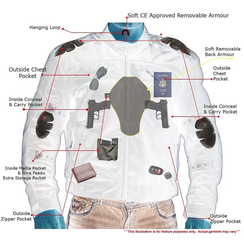 The Men's Black Tri-Tex X-Armor Armored Motorcycle Jacket Is the Most Advanced Motorcycle Jacket on The Market. Made Of Durable Tri-Tex Fabric 600 Denier High Performance Breathable Laminated Fabric Featuring Pads on Shoulder, Arms and Elbow (New Level Of Protection By X-Armor, Lighter Weight, Less Bulky, X-Armor Armor Provides Highest CE Approved Protection, Ergonomic Design, Higher Impact Absorption, Free Movement). Also Includes Removable Foam Armor On Back, Multiple Zippered Pockets Throughout. Dual Gun Pocket, Media Pocket with Wire Feed, Removable Quilted Liner and Mesh Lining Underneath.