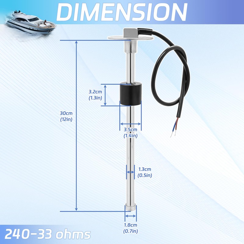 - 【Multiple Sizes】 Choose from 8 sender sizes (150mm, 200mm, 250mm, 300mm 350mm, 400mm, 450mm and 500mm) to match your tank depth. The 21mm resolution and 0-190 Ohm output guarantee precise fuel/water level monitoring, compatible with most gauges.