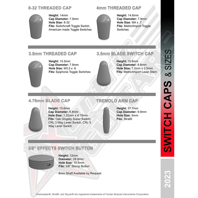 Xentric Guitars - Crystal Clear Series Resin Guitar Knobs & Switch Caps (6mm Dome Knob, Purple)