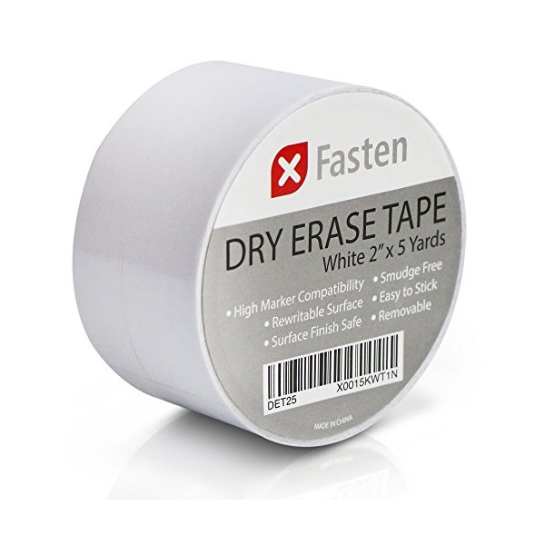 XFasten Dry Erase Tape, 2-Inch x 5-Yard, White, Smudge Free and Does Not Rub Off Unnecessarily