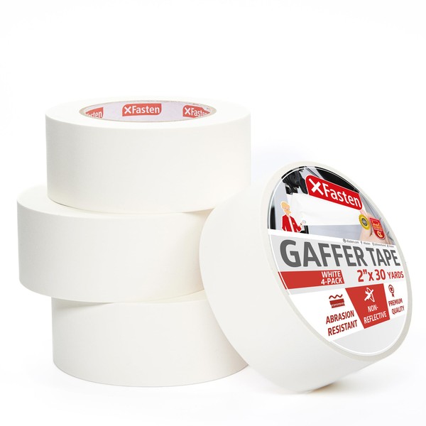XFasten White Gaffers Tape 2 Inch x 30 Yards, Residue-Free Strong Adhesion (4-Pack 360-feet Total) Non-Reflective Cloth Matte White Tape for Walls, Cords, Bookbinding, Console, Photography
