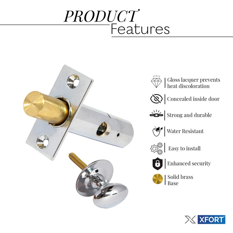 XFORT Rack Bolt Security Kit in Polished Chrome, Oval Turn Knob with 55mm Rack Bolt. Extra Security As an Additional Lock, Enhanced Protection for Doors.
