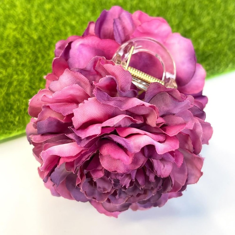 - Flower design: this claw clip features a full hydrangea with stacked petals in bold shades of pink and lavender. The layered realistic texture adds volume and visual elegance.