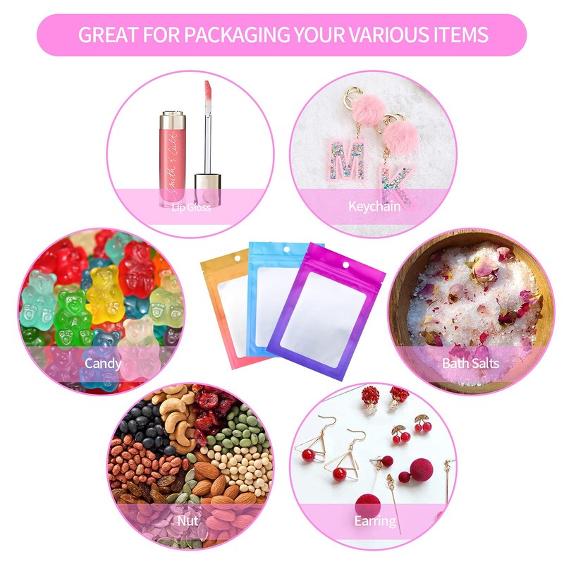 Contains: Matte gradient orange Mylar Ziplock Bags x 100 piece Protection Our Foil Pouch Bags featured Leak proof, Smell Proof and Resealable, keep oxygen, moisture, dust and odors out of these bags. Great for storing jewelry, accessories and homemade earrings. Why You Choose Our Mylar Bags? -The mylar bags provide excellent toughness with a sealing strip, very convenient to open and close. - The gradient purple plastic candy zipper bag is very cute, and transparent window design allowing for a quick glance at contents inside. -These packaging bags equipped with a hanging hole, perfect for product display. Thanks for purchase from XFXIA shop, we provide 24 months warrantyplease feel free to contact us if any question or suggestion about our mylar bags product or customer service, we will give you a fast satisfied solution within 6 hours.