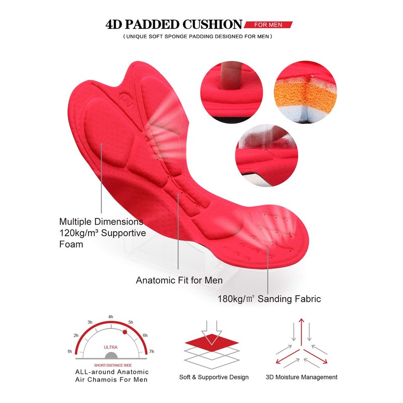 5;Suitable for men, our shorts can help relieve hip pain from long cycle rides.