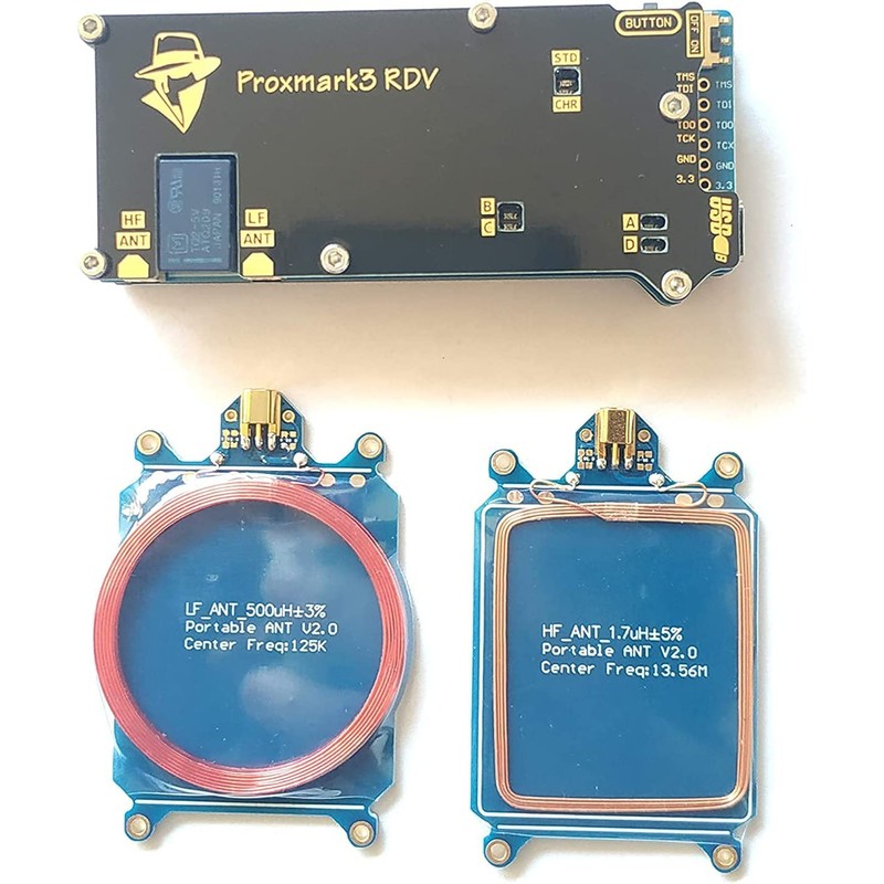 - Package includes: 1. Proxmark 3 main board 2.LF antenna 3.HF antenna s 4.MMCX antenna cables 5. Micro USB cable for connecting Proxmark to PC 6. White PVC card