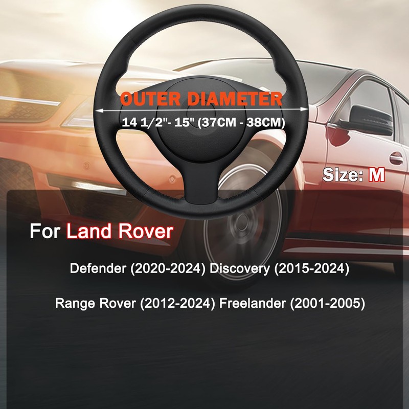 - 【CUSTOM FIT】This steering wheel cover fits for Land Rover all 14.5-15 inch (37 cm to 38 cm) standard steering wheels, Compatible With Land Rover Defender (2020-2024) Discovery (2015-2024) Range Rover (2012-2024) Freelander (2001-2005).