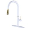 XHZSFYOU Single Handle White Kitchen Faucet with Nickel Gold Sprayer Brass Kitchen Sink Faucets with Pull Down Sprayer Modern Faucets with Dual Function Spray