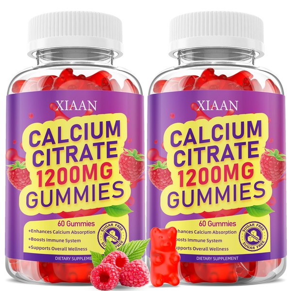XIAAN Calcium Citrate Gummies 1200mg Calcium Gummies for Women & Men, Chewable Calcium Supplements Support Immune Health & Bone Strength, Vegan/Sugar-Free/Gluten-Free, Raspberry Flavor 120 Count