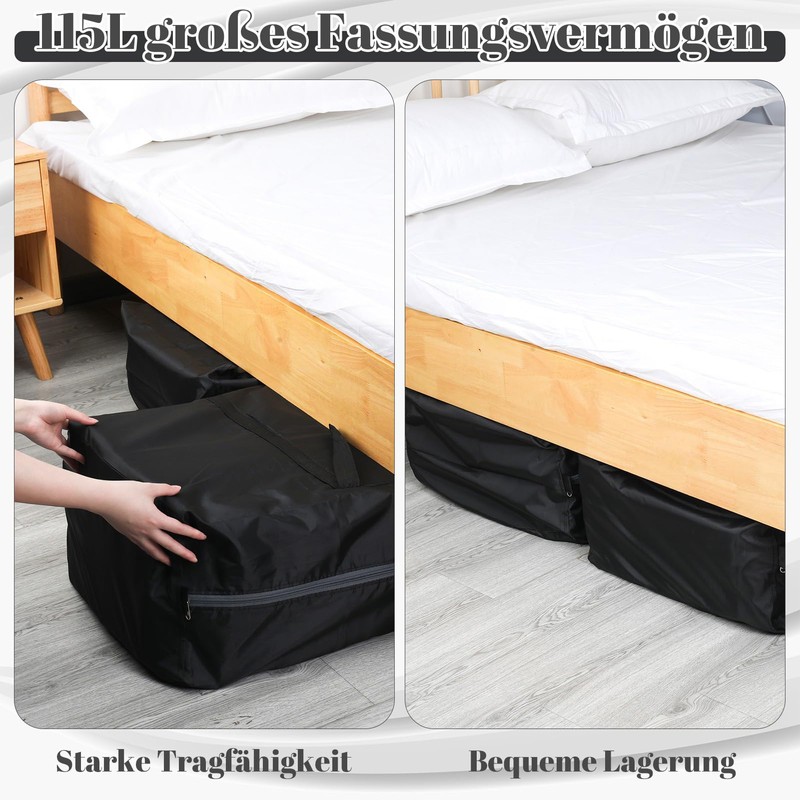 - 【Practical Oxford Cloth Storage Bag】 The storage bag is made of anti-tear oxford material, which guarantees long term durability. With a capacity of 115 litres, it is ideal for space-saving storage of duvets, clothes or seasonal bedding. The sturdy seams and durable structure ensure safe underbed storage or order in the cupboard