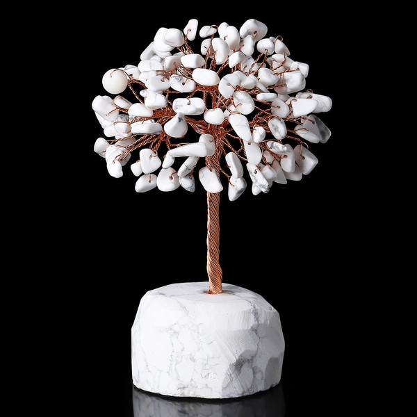 - [TURQUOISE CRYSTAL TREE] - The healing crystal tree is an ideal decoration,made of metallic copper wire,stone base and have crystal stones on the leaves,shaped like a money tree,sturdy,stable and exquisitely beautiful.Natural White Turquoise Stones have protective properties that help to stimulate energy and maintain balance.It can remove bad emotions, keeping you away from negativity and relieving emotional stress.