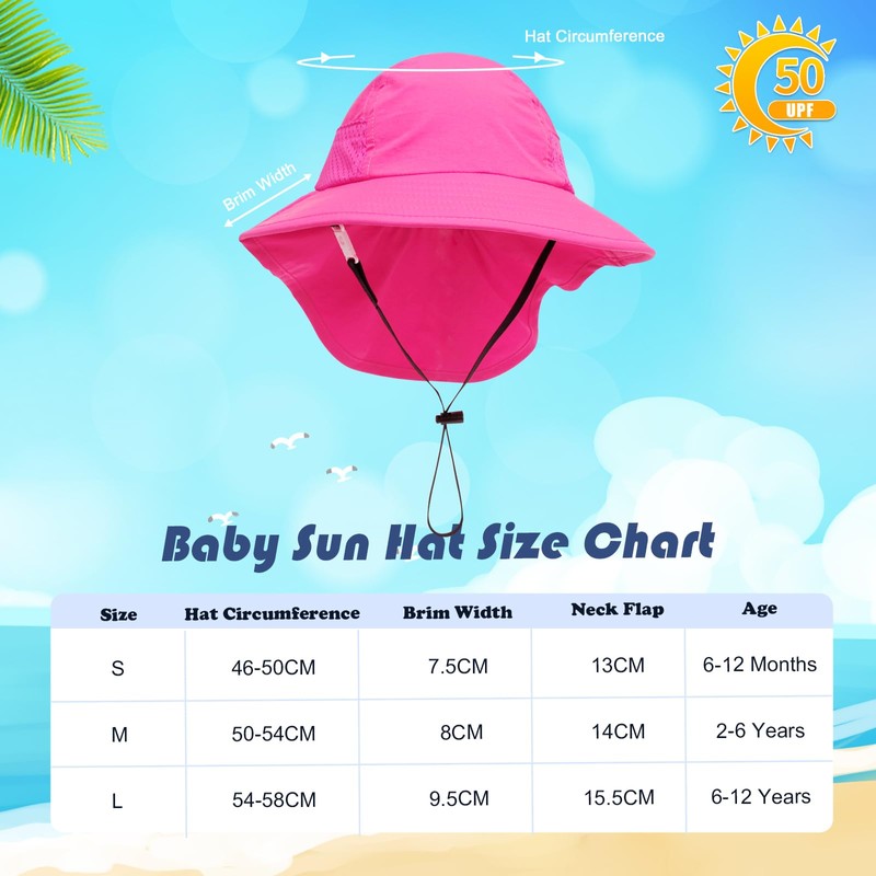 - UPF 50+ Protection: The toddler sun hat is made of 80% nylon,20% polyester,which can keep baby cozy. Baby sun hat with UPF 50+ protection can block up to 98% of UVA and UVB Rays, which can protect baby’s head, face, eyes, ears and neck from strong sun light. The long neck flap of the baby summer hat provides full protection for delicate neck and back skin.