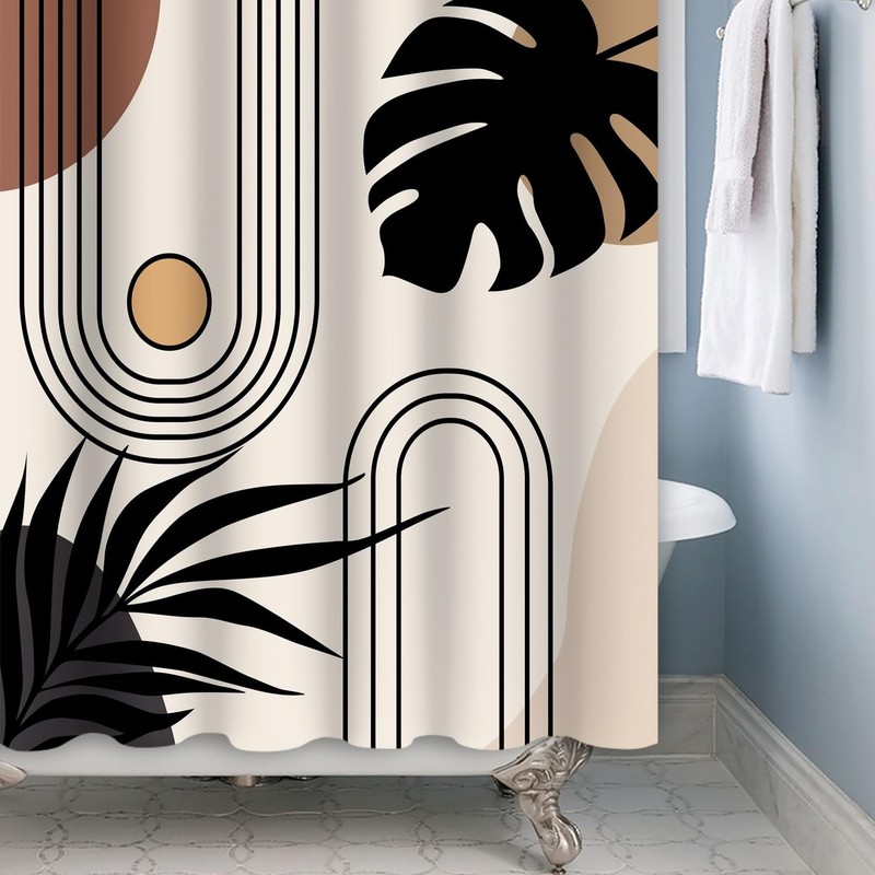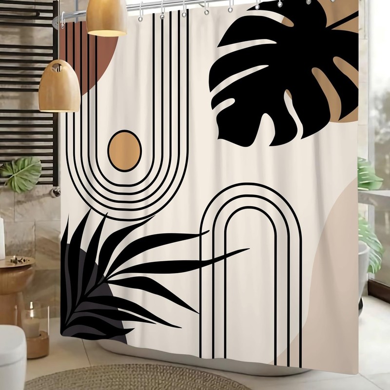 Xiaoterna Boho Sun Line Shower Curtain Retro Abstract Bathroom Curtain Black Leaves Sun Shower Curtain Rustic Countryside Shower Curtain Machine Washable Waterproof Fabric 180x220cm