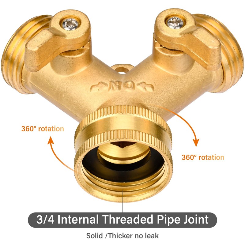 XIBETEO Garden Hose Y Valve Hose Splitter Solid Brass Hose Splitter 2 Way Hose Adapter 3/4" GHT Thread with 2 Presure Washers and Seal Tape