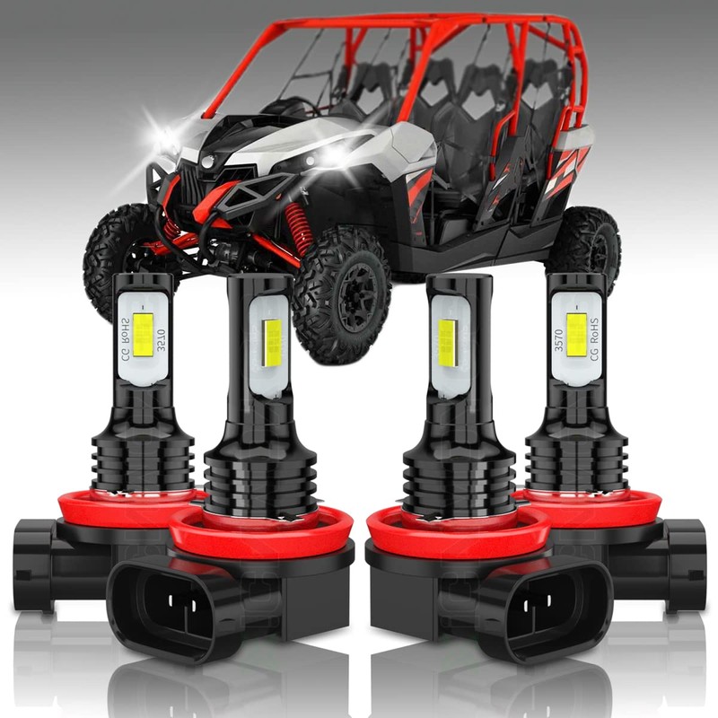 XICNMOYGS H9 H11 Fit for Can Am Maverick Max ATV UTV Motorcycle, High Low Beam LED Headlight Bulbs, Error Free, 6000K White Headlight Bulbs, ATV UTV Exclusive, IP67 Waterproof, Pack of 4