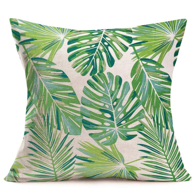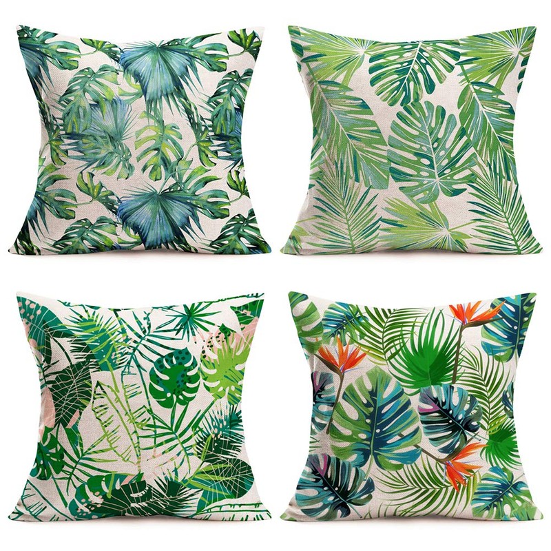 ✔Summer Tropical Leaves Cotton Linen Throw Pillow Covers