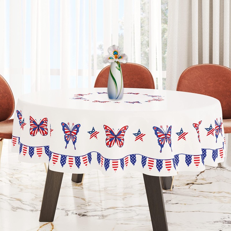 - DIMENSIONS: Patriotic tablecloth Perfect 60-inch round tablecloth size ideal for 4-6 seat dining tables, providing ample overhang for comfortable seating