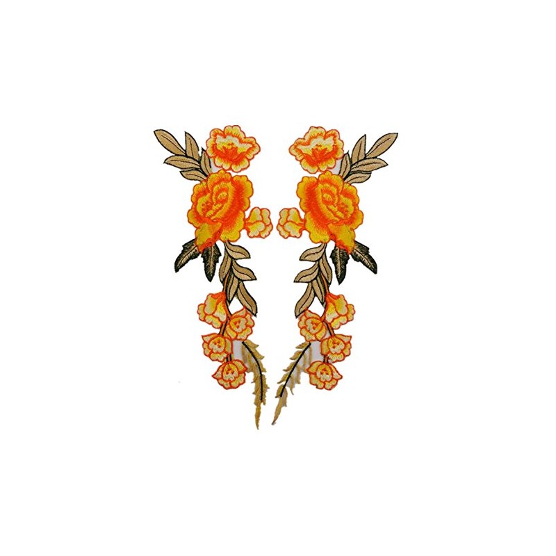Ximkee 1 Pair Rose Sew Iron on Applique Embroidered Patches-Orange
