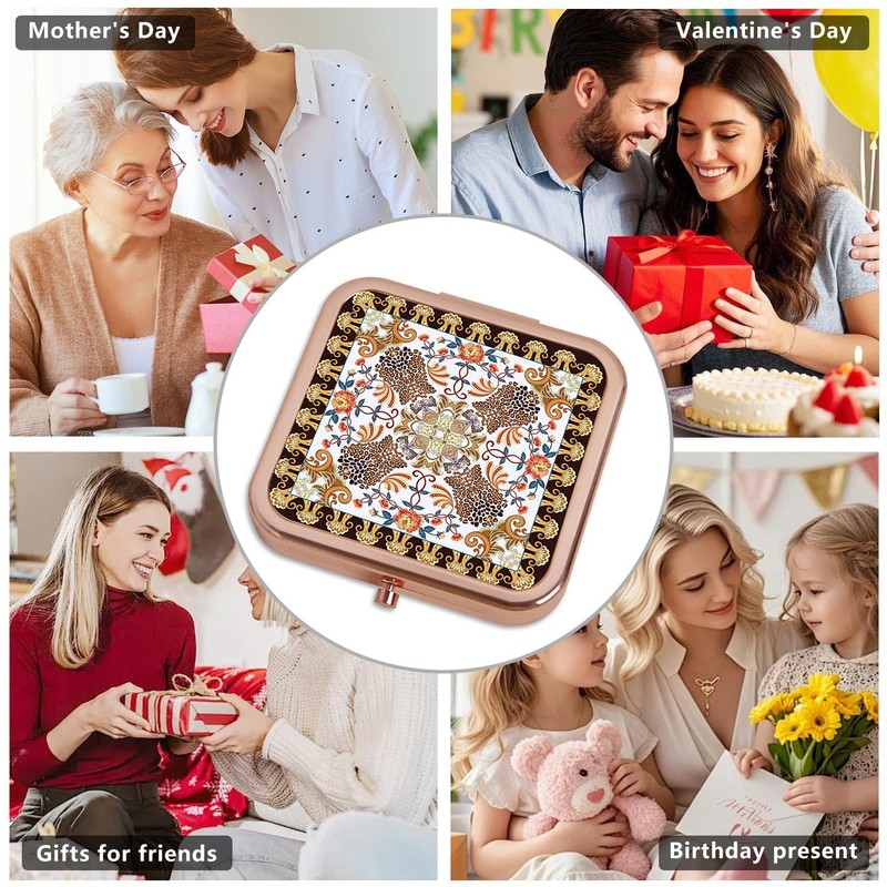 Ximruyuv Small Compact Mirror, Rosegold Square 2.8”×2.8” DropRubber Style Double Sided Mini Magnifying 1X/2X Mirror for Purse Can be Used as Gifts for Woman (Flower02)
