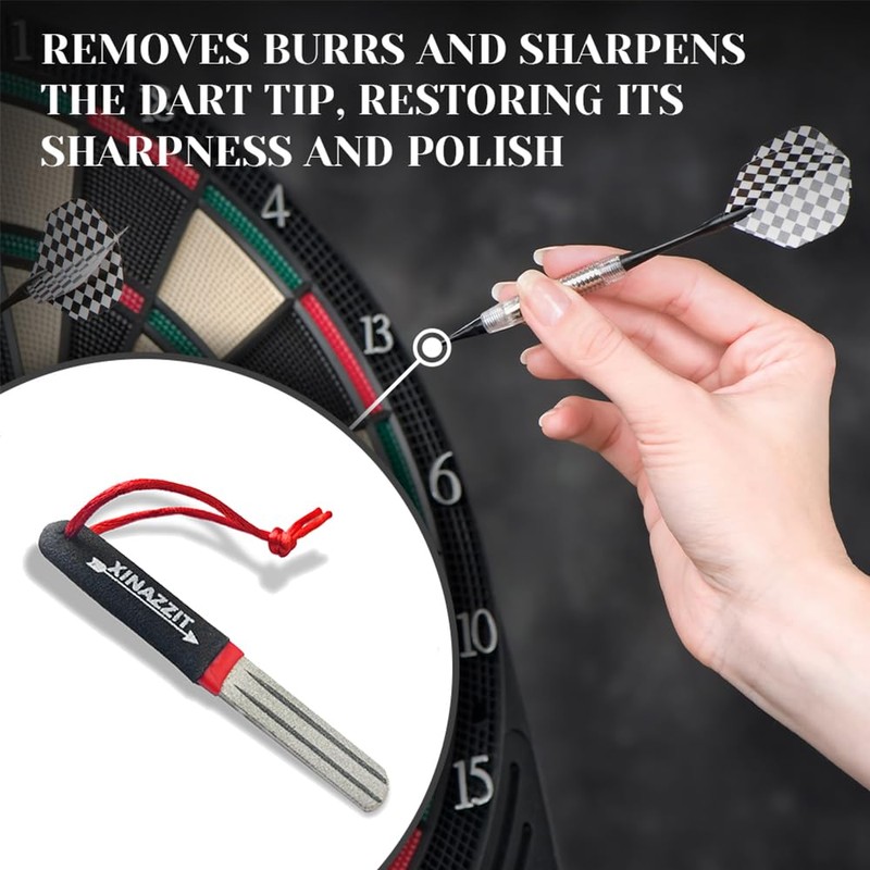 - CONVENIENT & USER-FRIENDLY: Simple to use and perfect for touching up your darts before and during matches, this handy sharpener ensures peak performance at all times. Bring it with you wherever you go and sharpen your way to success!