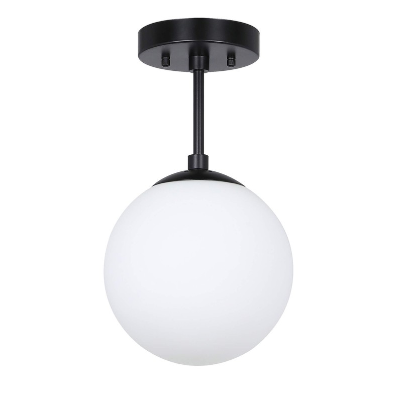 - FEATURE: Classic Semi flush light features a spherical white glass shade in matte black finish. Its globe-shaped sculpted metal lamp shade creates a modern but simple look