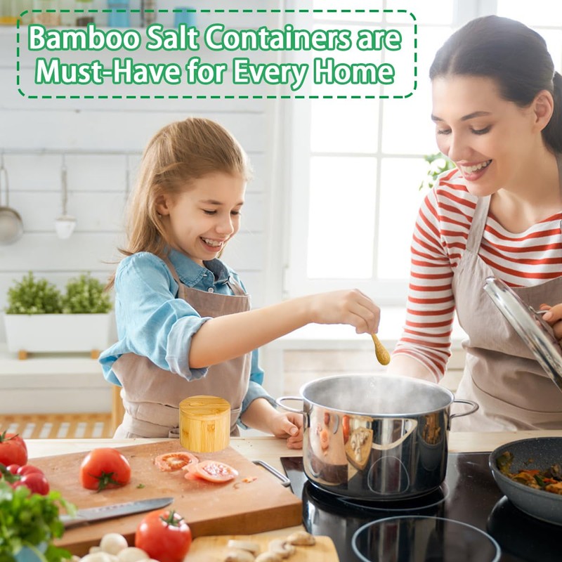 • Multifunctional: This bamboo salt container set can hold not only salt, but also pepper, spices, sea salt, bath salts, sugar, tea, nuts, beans, buttons and other handmade utensils, ideal for cooking, preparing food or dinner. It can be given as a housewarming gift, birthday gift, wedding gift, Christmas gift, Halloween gift and Mother's Day gift to family, friends, wife and cooking enthusiasts.