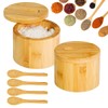 XingyLi 2 Pack Bamboo Salt Jars Round Storage Box for Salt and Spices with Ma...