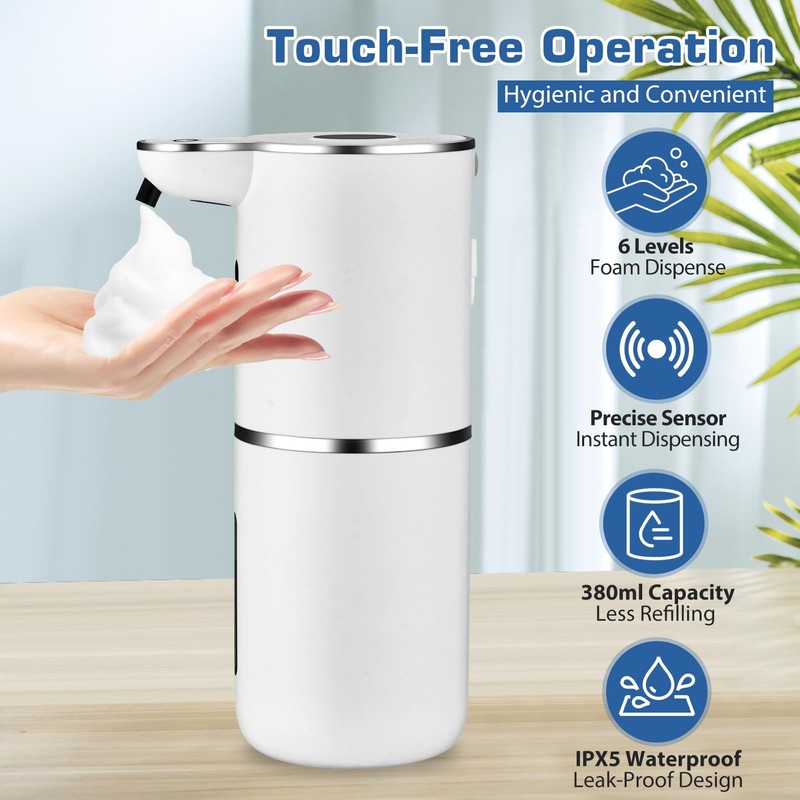 - Fast USB-C Charging & 380ml Capacity - The touchless soap dispenser have a modern USB-C port, which provides quick, reversible charging while the extra-large reservoir holds enough foaming soap for 400+ uses. Fewer refills mean more convenience.