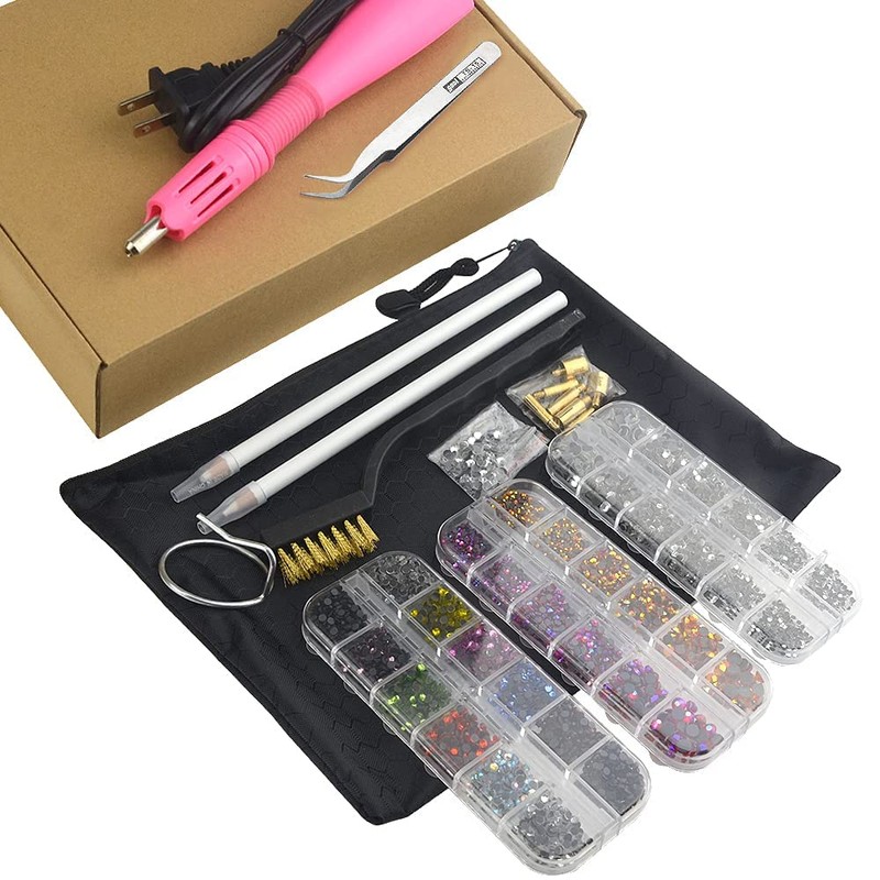 - ★【パッケージ】→このホットフィックスアプリケーターキットには、ホットフィックスアプリケーター1個、ホットフィックスチップ7個、ラインストーンペンシルピッカー2個、サポートスタンド1個、ジュエルピンセット1個、シルバークリーニングブラシ1個、ホットフィックスクリスタルラインストーン3箱、プラスチックボックス1個、収納バッグ1個。