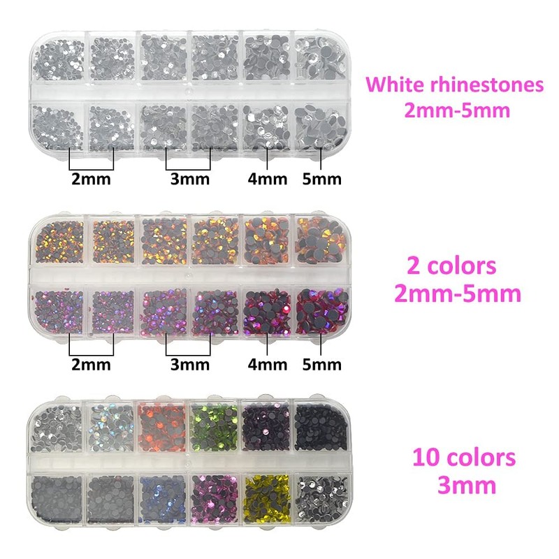 - ★【ホットフィックスラインストーン3箱】→ミックスサイズのホワイトラインストーン1パック(約2184個)、ミックスサイズの赤とクムキャットラインストーン1パック(約2000個)、3mm 10種類のマルチカラーラインストーン1パック。 ラインストーンの5つの仕様があります。SS6、SS10、SS16、SS20、SS30 (2mm-6mm) のうち、SS10-3mmサイズは最も頻繁に使用されるクリスタルサイズです。
