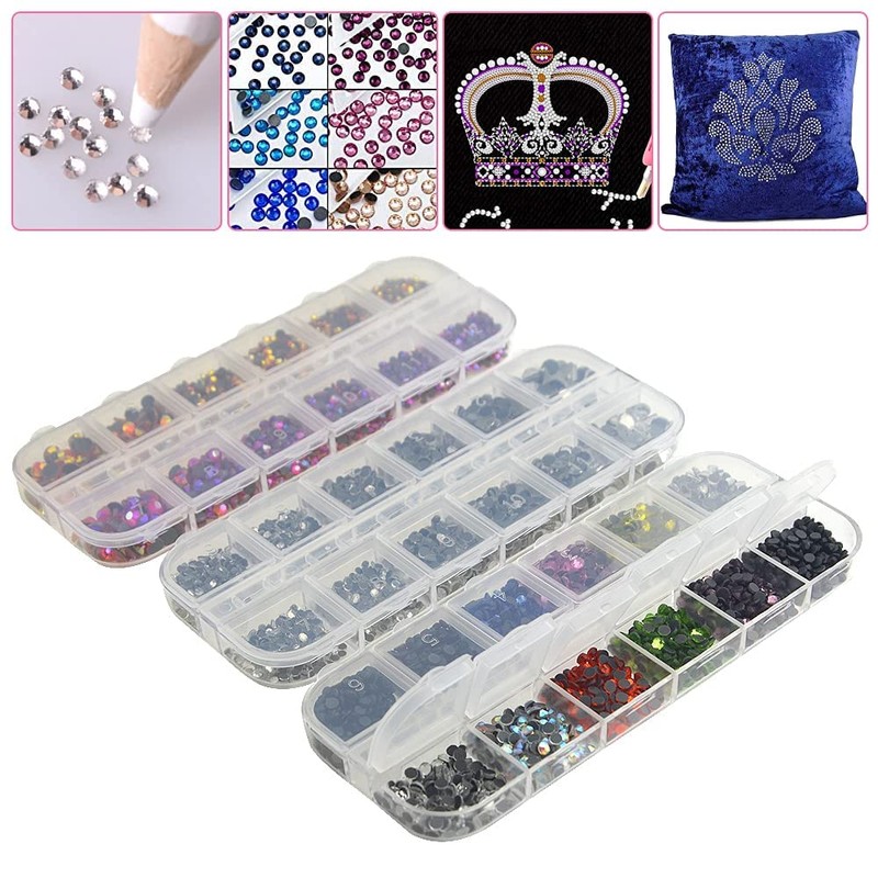 - 2000個のホットフィックスレッドとクムカットラインストーンを含む、12個のコンパートメントのボックス1箱。