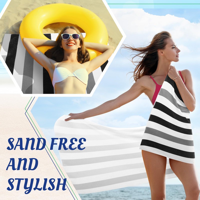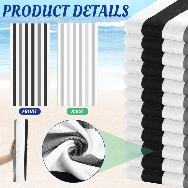 Xinnun 12 Packs Towel Set Bath Towel Swim Towel Beach Towel Oversized 28 x 60 Inch Highly Absorbent Pool Towel for Adult and Kid for Swim Bath Travel Beach Pool (Black, White and Gray Stripes)